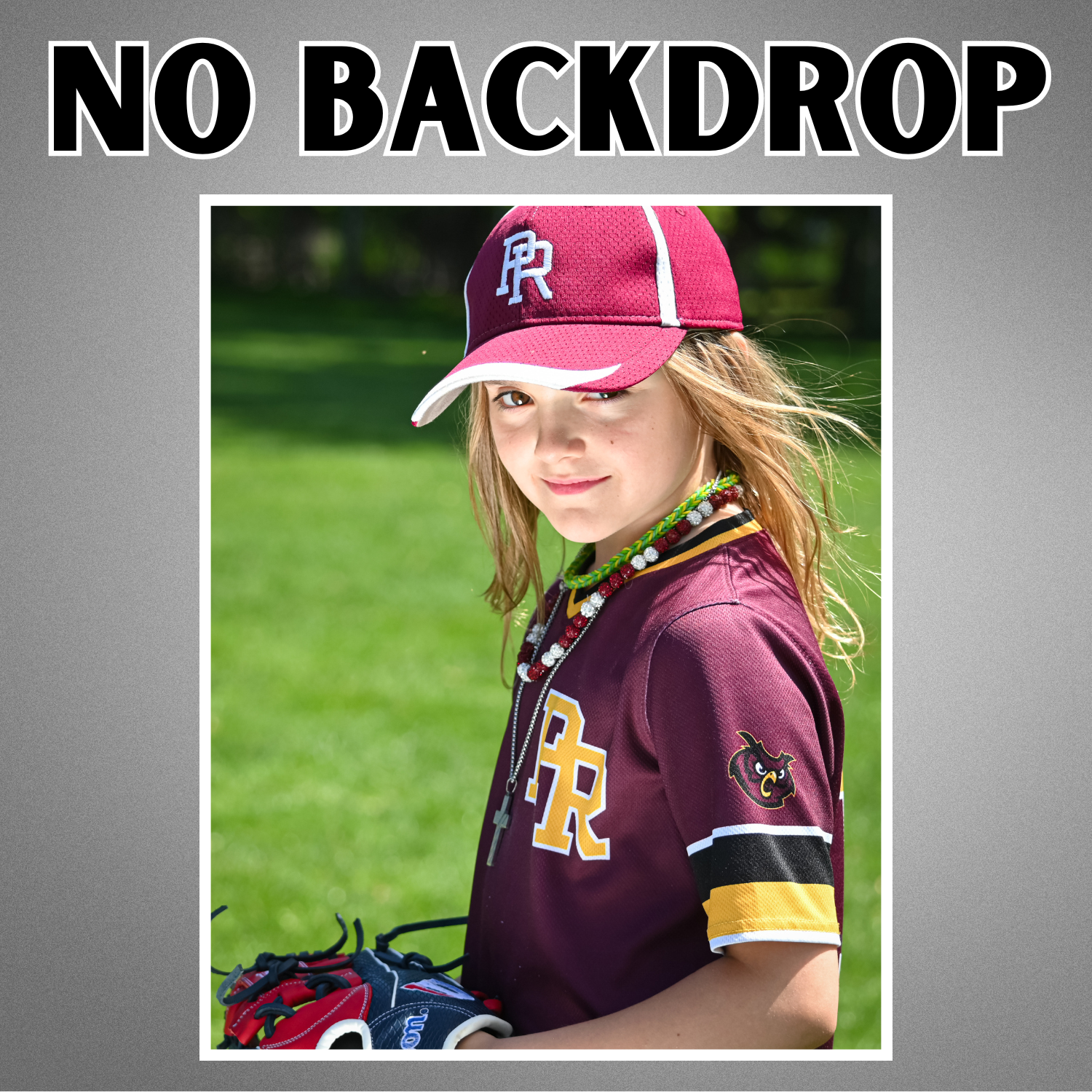 TEAM NUMBER: (INDIVIDUAL ONLY). Athlete stands in a pose of their choice. This option allows one optional prop. Options include sports equipment such as sticks, bats, gloves, balls, etc. The athletes name is featured on the portrait, with the team number illuminated behind the athlete. The colors used will match the team uniform colors. Please provide any specific requests on the day of your photos.